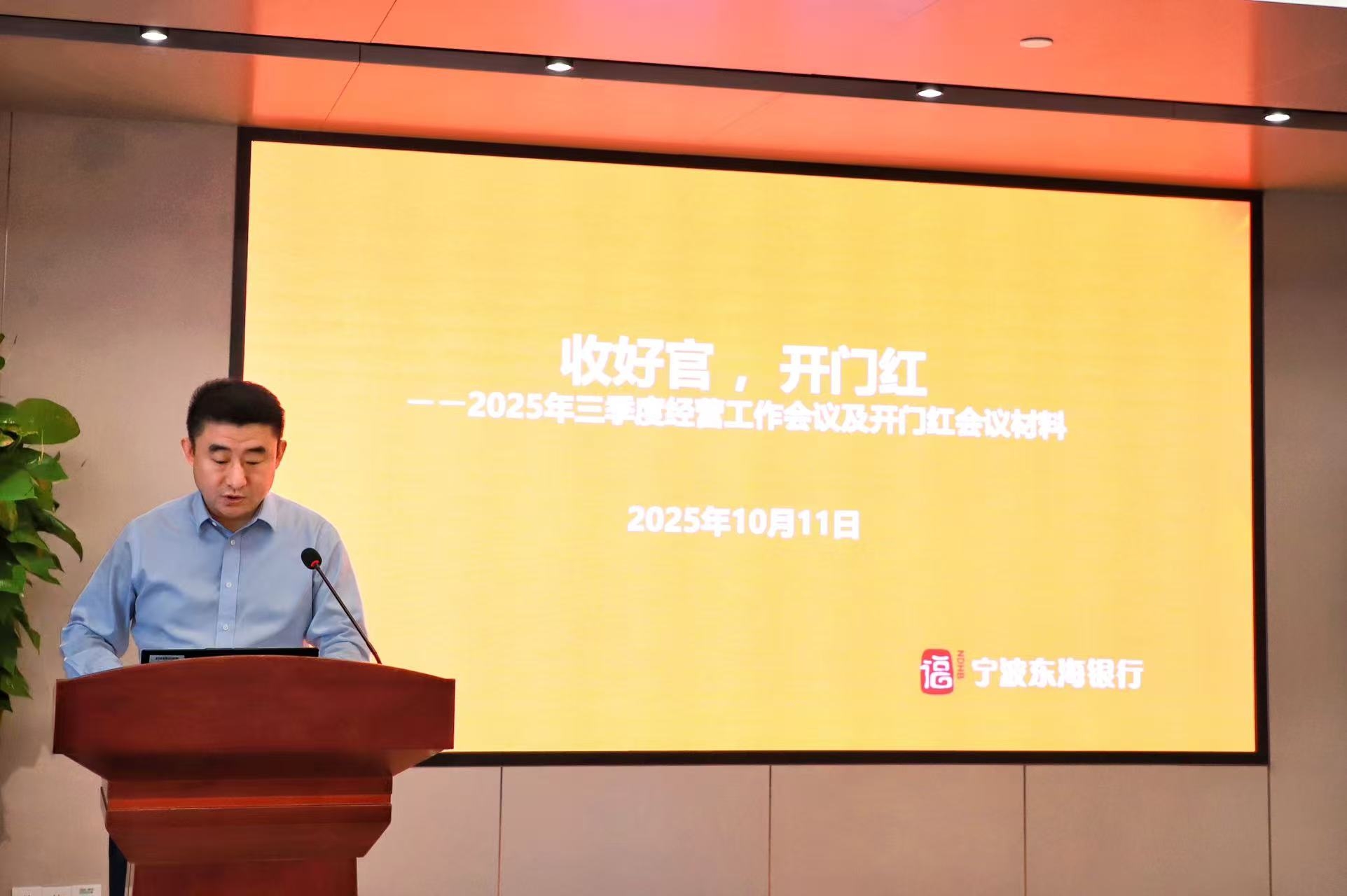 2025年10月11日上午,宁波东海银行召开2025年三季度经营工作会议暨“开门红”工作部署会,全面总结前三季度经营成效,深入研判当前发展形势、剖析问题不足,明确下阶段努力方向,全力确保年底收好官,明年初开好局。